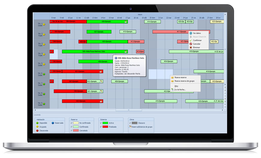 • Crear reservas con sólo arrastrar el mouse sobre las habitaciones.