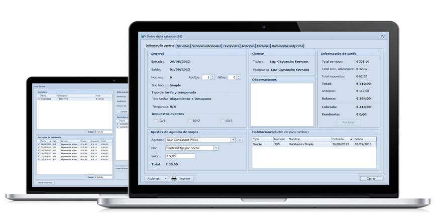 JCL Hotel toma el control completo de los registros de las habitaciones, reservas avanzadas, procesos de check-in y check-out, personal y huéspedes. Todo ello con una gran cantidad datos, se pueden llenar las opciones o considerar no hacerlo teniendo en cuenta los intereses o necesidades del hotel.