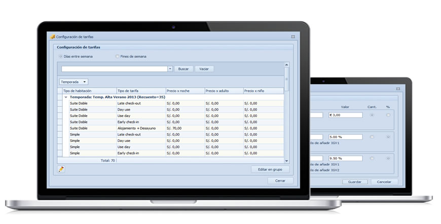 De la misma manera que JCL Hotel puede realizar un seguimiento de las habitaciones de los huéspedes, se puede hacer lo mismo con las tarifas, las que pueden ser controladas todo el tiempo y se pueden modificar de acuerdo a la temporada.