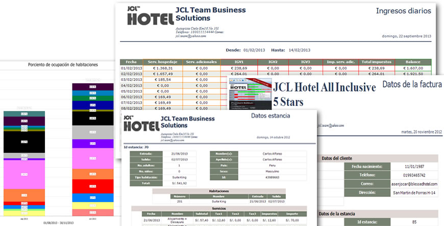 La parte más importante en las operaciones de una organización son sus informes. El informe permite juzgar el desempeño de la empresa, lo que falta y cómo mejorar los servicios en el futuro. Con este fin JCL Team Business Solutions decidió incluir en JCL Hotel, los informes siguientes: